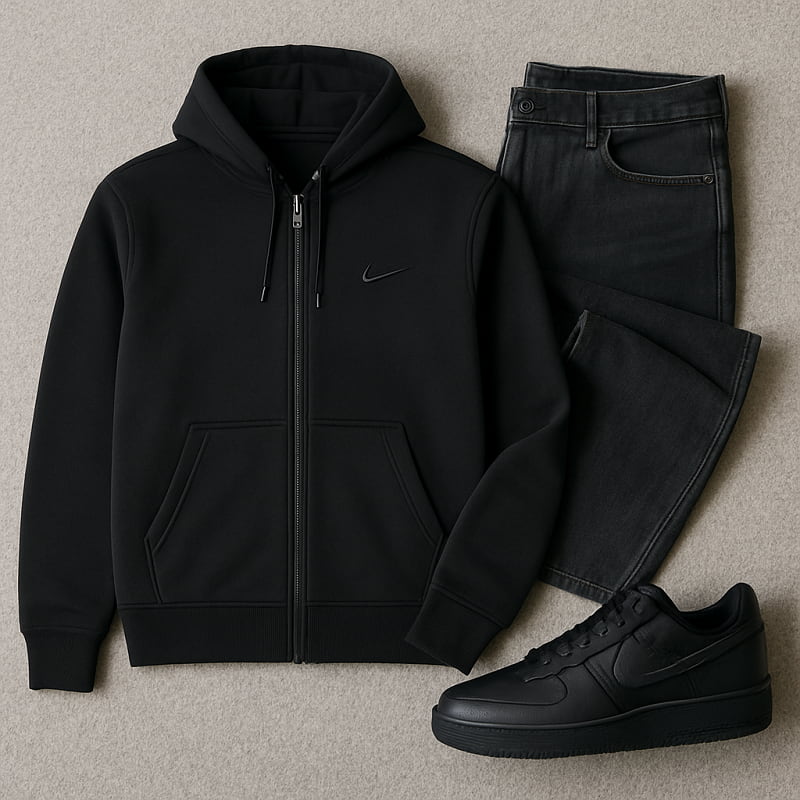 سوئیشرت زیپ دار مردانه بیسیک مشکی-مشکی