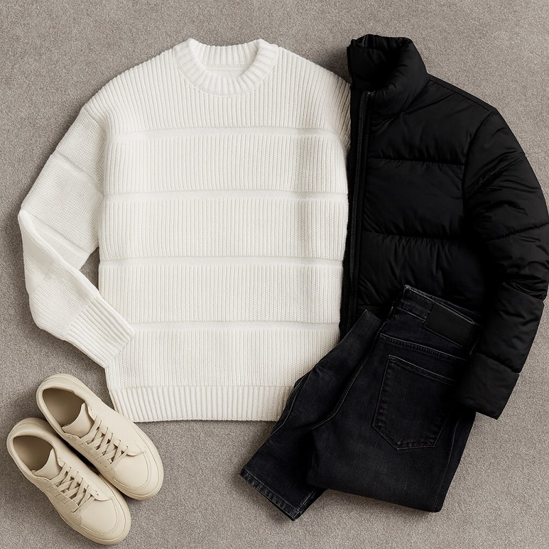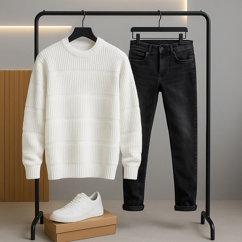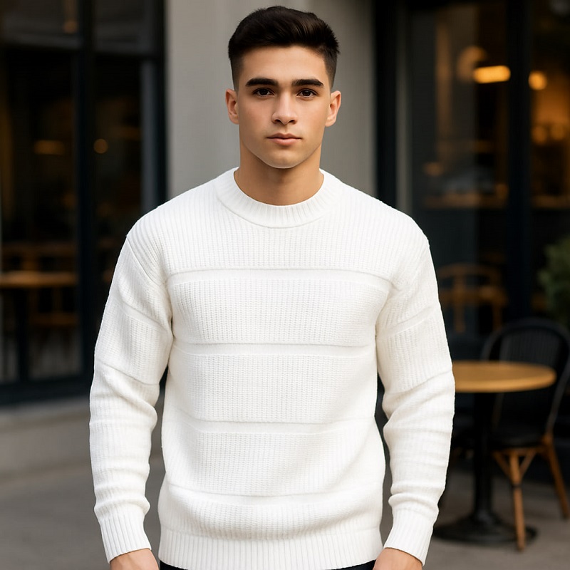پلیور بافت مردانه یقه گرد مدل Arman-سفید